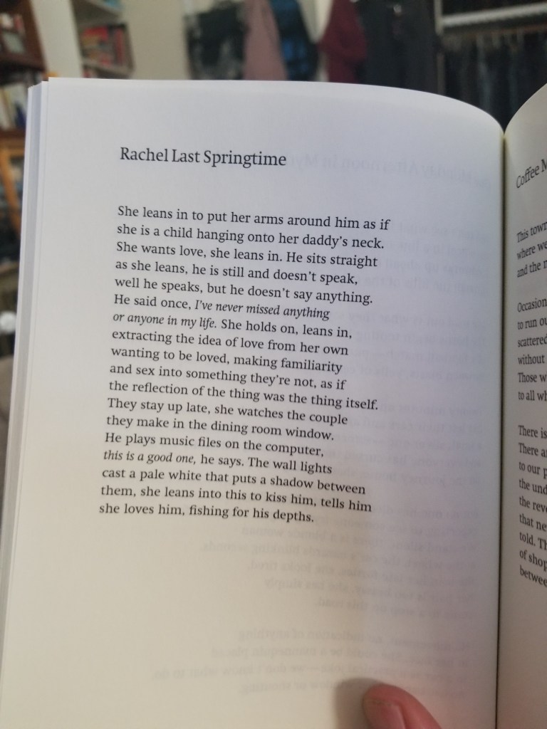 “They stay up late, she watches the couple they make in the dining room window.”